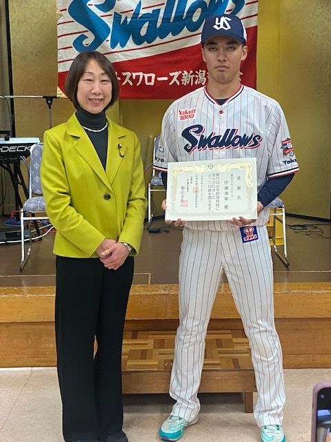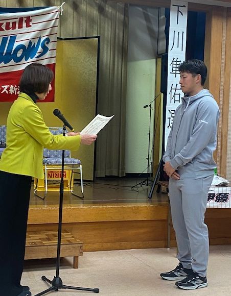 少年野球監督と役員を高津さんが表彰してくれました。こんなの全国でここだけの話